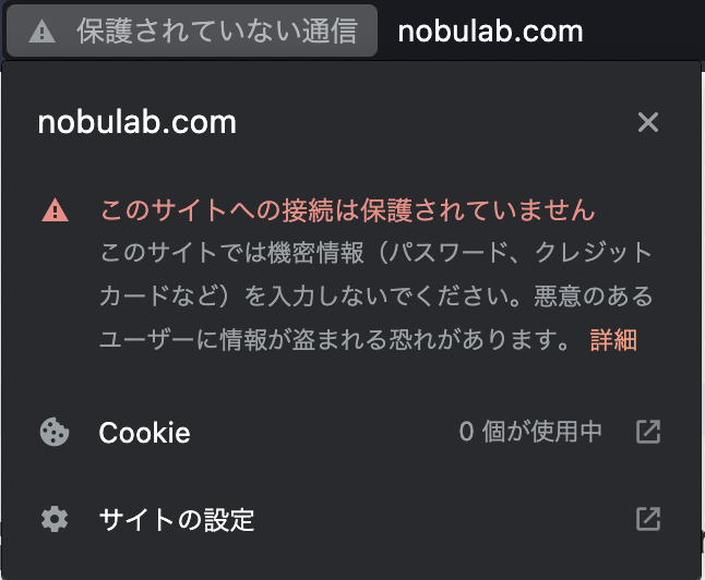 これによって、https://nobulab.com でアクセスした場合は問題がなくなったのですが、https://nobulab.comでアクセスされた場合は依然と上記の警告が表示されてしまいます。